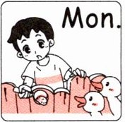 1. 关键词: ducks、Monday,故第六幅图标1。