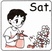 6. 关键词: water the flowers、Saturday,故第三幅图标6。