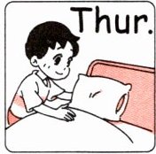 4. 关键词: make the bed、Thursday,故第四幅图标4。