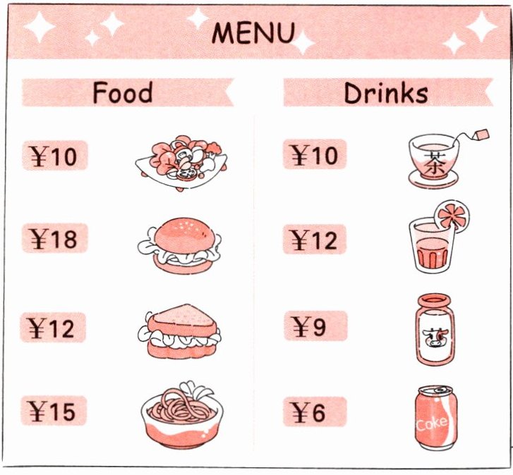 Chenchen: I have 18 yuan. I'd like a 2. ______