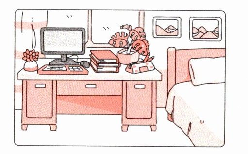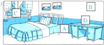 (三)示例:Your room is nice and clean now. There is a big bed near the window. There are two pictures above the bed. There is a computer and two plants on the desk. There are some books and a pencil box, too.