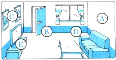 分析:应在电视前面的圆圈内填E。