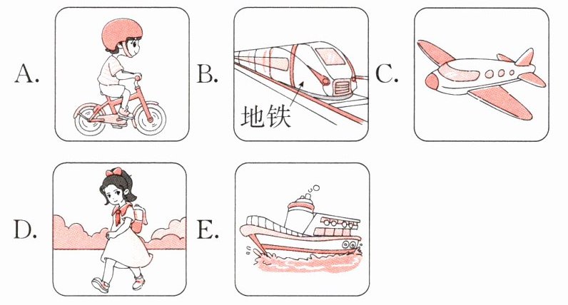 三、听短文,选择合适的交通方式,填在相应的括号内。(有一项多余)