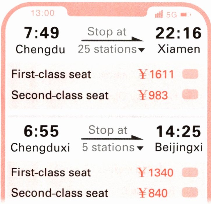 )5. Lingling has nine hundred yuan. She can buy a ticket from Chengdu to Beijing.
