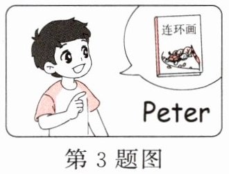 1. is going to buy 2. is Cathy going 3. He is going to buy a comic book. 4. What is Jack going to buy? 解析 句型:—What+be 动词+主语+going to do+其他? —主语+be 动词+going to do+其他. 1. 句意:——Fred 打算买什么? ——他 一些比萨。 分析:问答时态应保持一致。答句主语是 He,be 动词应用 is,故答案为"is going to buy"。 2. 句意:—— 买什么? ——她打算买一辆玩具汽车。 分析:问答时态应保持一致。图中 Cathy 想买玩具小汽车,故答案为"is Cathy going"。 3. 句意:——Peter 打算买什么? —— 分析:问答时态应保持一致。图中 Peter 想买连环画册。问句主语为 Peter,答句主语应为 he,故答案为"He is going to buy a comic book."。 4. 句意:—— ——他打算买一顶头盔。 分析:问答时态应保持一致。图中 Jack 想买一顶头盔,故答案为"What is Jack going to buy?"。