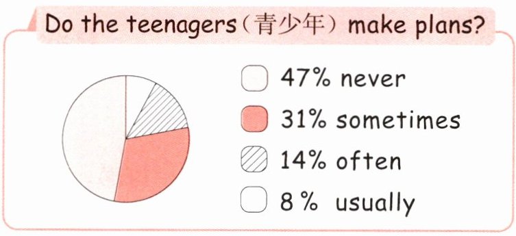 )2. ______ of the teenagers never make plans.A. 47%