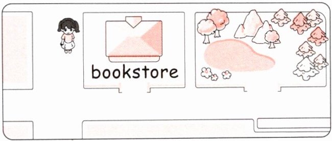 —Turn left at the bookstore and go straight. You can see it on your left.