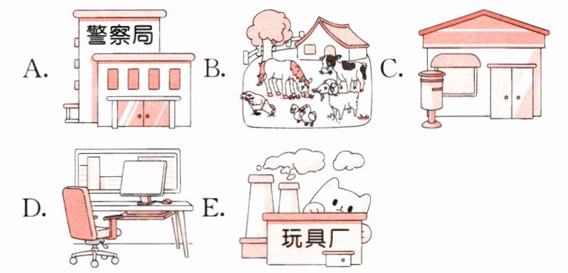 六、一些学生上台分享了身边人的职业。根据句意,选出句中人物的工作地点。