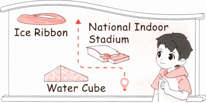 五、Allen想去参观"冰丝带",但他不知道"冰丝带"的位置。假如你是Li Hua,正好路过此地,请告诉他正确的路线吧!