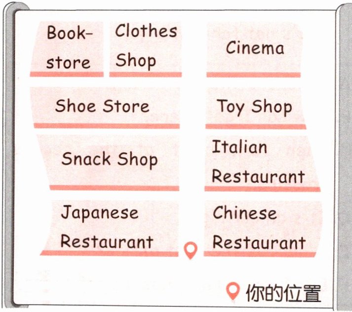 )4. Linlin wants to buy some books. She can go straight and turn left at the snack shop.(