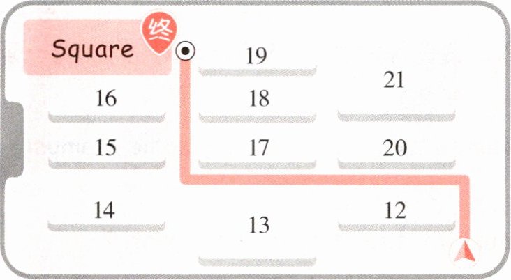 四、帮助Allen从家前往广场。根据导航地图,用合适的单词填空。