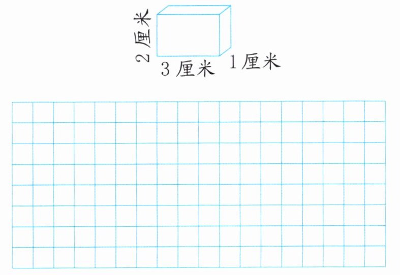 5. 请在方格图中(每个小正方形的边长表示1厘米)画出下面长方体的展开图。(画出一种即可)