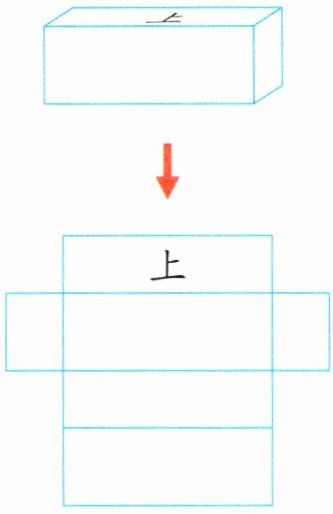 解析:展开后共有6个长方形,其中前、后2个长方形的长为3厘米、宽为2厘米;左、右2个长方形的长为2厘米、宽为1厘米;上、下2个长方形的长为3厘米、宽为1厘米。