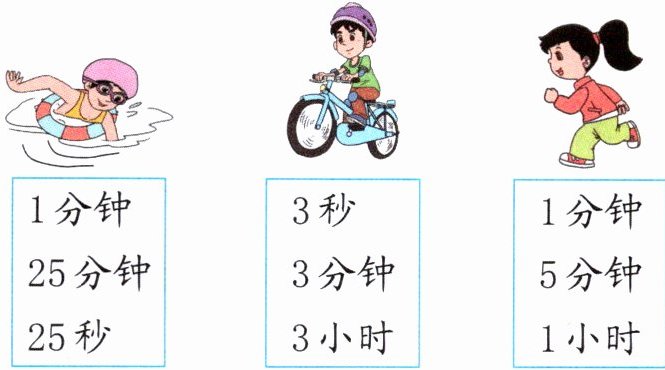 圈出下面的运动方式所对应的时间。