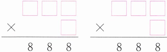 解析:观察竖式可知,三位数乘一位数的积是888,由1×8=8,2×4=8……可以推算出111×8=888,222×4=888……本题答案不唯一。
