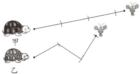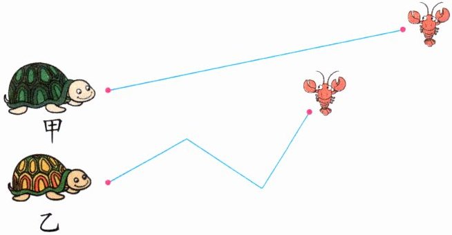 乙乌龟先吃到小龙虾 解析:用圆规在图中依次截取长度相等的线段,进行比较即可。