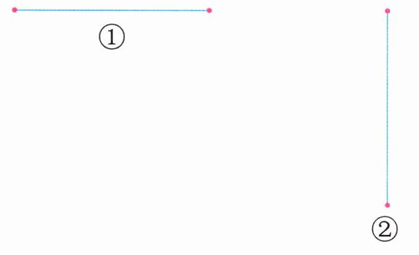 2. 下面哪条线段更长?先画一条比①号线段长 2 厘米的线段,再画一条比②号线段短 1 厘米的线段。