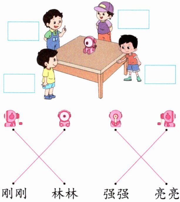 1. 根据每人看到的图形,把名字写在对应的□里。
