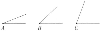 5. 从左到右,分别以 A、B、C 为顶点,依次画出三个越来越大的角。
