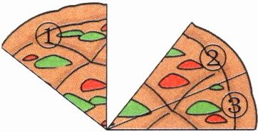 6. 妈妈给伊伊点了外卖披萨,伊伊吃了一些后,还剩下3块(如图)。
