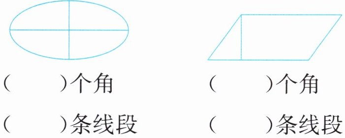 2. 数一数,下面的图形中各有几个角?几条线段?