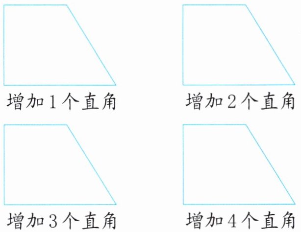 5.(操作探究)在下面的图形中各画一条线段,分别增加不同数量的直角。
