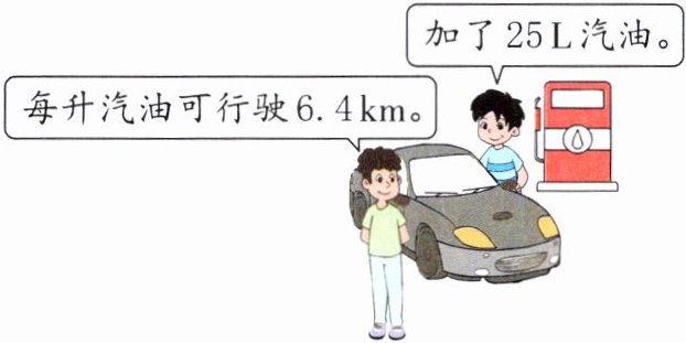 25×6.4=160(km) 77×2=154(km) 160>154 加的汽油够用 解析:已知每升汽油可行驶 6.4 km,则 25 L 汽油可行驶 25×6.4=160(km)。求出往返的路程并比较即可。