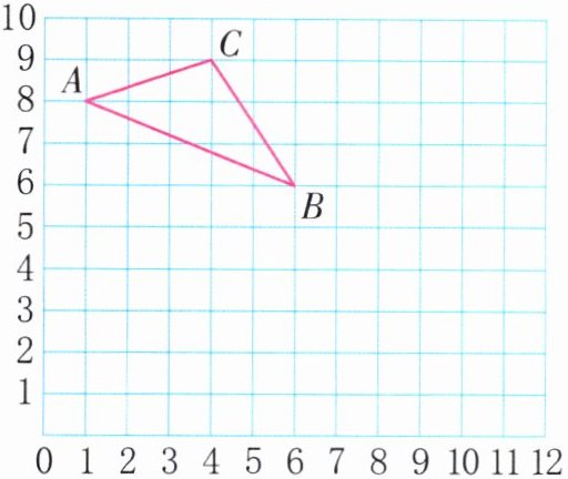 (1)用数对表示出三角形ABC三个顶点的位置:A( , )、B( , )、C( , )。