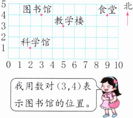 解析:虎山在动物园大门的正北方向300m处,每个小方格的边长为50m,所以虎山在动物园大门的正北方向,距离动物园大门6个小方格,即虎山的位置用数对表示为(5,6)。同理,大熊猫馆的位置用数对表示为(7,1)。
