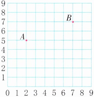 5. (常德安乡)鸵鸟养殖基地一观测者测得一只鸵鸟的位置在点A(2,5)处,3小时后,这只奔跑的鸵鸟的位置已经在点B(7,7)处了。若图中每个小方格的边长表示15千米,且鸵鸟沿格线跑,则它平均每小时跑多少千米?