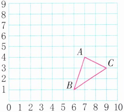 画出的图形是( )形。将这个图形平移,使点A的对应点$A_1$的位置为(6,5),画出平移后的图形$A_1B_1C_1D_1,$则点$C_1$的位置为( , ),点$D_1$的位置为( , )。