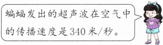 340×1.6=544(米) 544÷2=272(米) 解析:由“一只蝙蝠发出超声波1.6秒后接收到反射回来的超声波”可知,这1.6秒是超声波传播1个来回的时间,则单程=总路程÷2。
