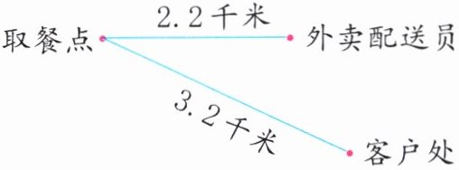 (1)6.6分=0.11时 2.2÷0.11=20(千米/时) 20<25 该外卖配送员的车速符合要求 (2)3.2÷20=0.16(时) 0.16时=9.6分
