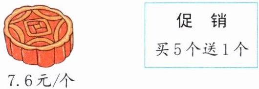 7.6×5÷6≈6.33(元)解析:由“买5个送1个”可知,买回6个月饼,只需付5个月饼的钱,先求出5个月饼的总价钱,再除以实际数量6个,即可得到平均每个月饼的价钱。