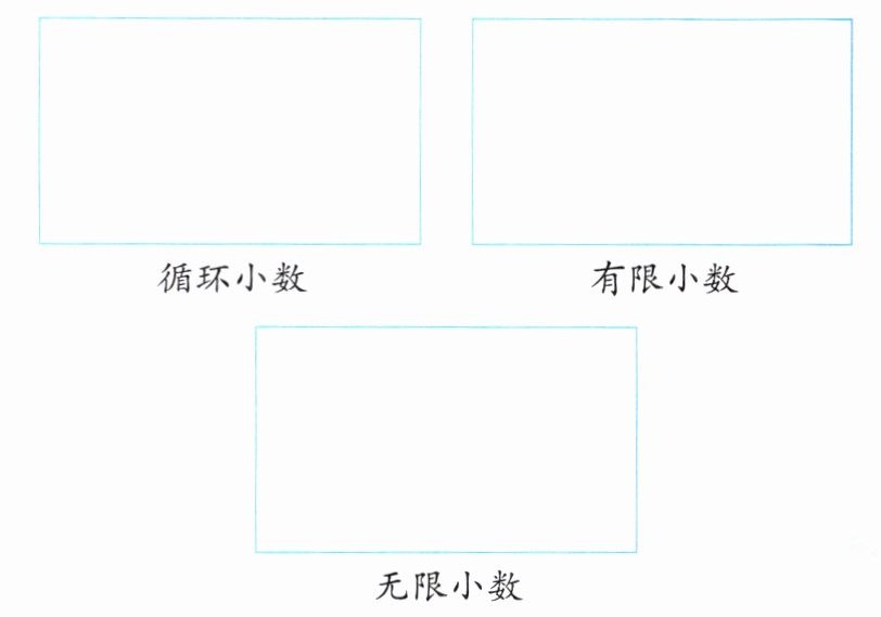 循环小数:0.$\dot{8}$、6.$\dot{2}$、0.543543…、4.$\dot{2}\dot{9}\dot{5}$、83.8383… 有限小数:7.6666、4.71、0.999、9.897164 无限小数:0.$\dot{8}$、6.$\dot{2}$、0.543543…、3.15249…、4.$\dot{2}\dot{9}\dot{5}$、83.8383…