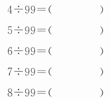 解析:通过观察可知,被除数的整数部分依次增加1,小数部分最后一个数依次减少1。商是五位小数,整数部分为0,小数部分的数字相同,这个数字=被除数整数部分的数字+1。