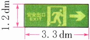 3.(社会生活)日常生活中我们要提高自我安全意识,在公共场所要注意观察安全出口标志牌的位置。有一块长方形安全出口标志牌(如图),它的面积是多少平方分米?