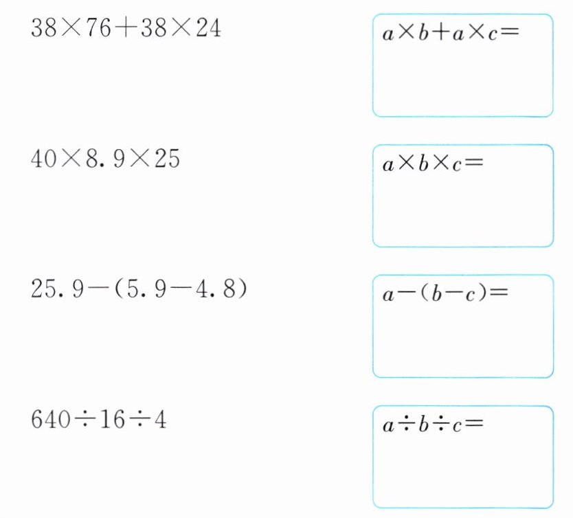3800 a×(b+c) 8900 a×c×b 24.8 a-b+c 10 a÷(b×c)