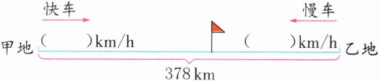 1.(算理理解)甲、乙两地间的铁路长378 km,一列快车和一列慢车从甲、乙两地同时出发,相向而行。快车每小时行驶120 km,慢车每小时行驶90 km,经过多少小时两车相遇?