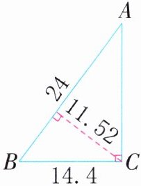 先根据已知的底$AC = 24$米和高$11.52$米求出三角形面积,再根据面积和底$BC = 14.4$米求出$BC$边上的高。