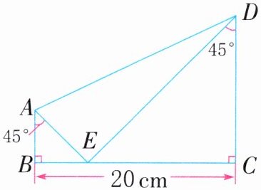 因为BC=BE+CE=20cm,所以AB+CD=20cm。