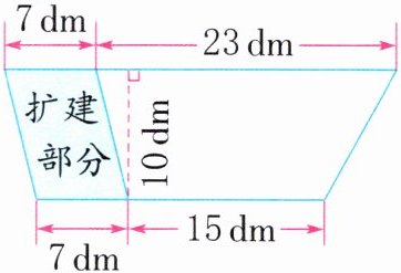由图可知,梯形的上底为$7 + 23 + 7=37$(分米),下底为$15 + 7 + 7 = 29$(分米),高为$10$分米。