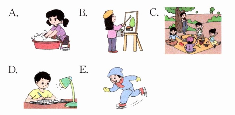 ) 3.They're going to ______ in an art lesson.A.wash clothes