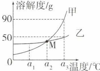 (1)M点表示$a_{2}^{\circ }C$时,甲、乙两种物质的溶解度相等。