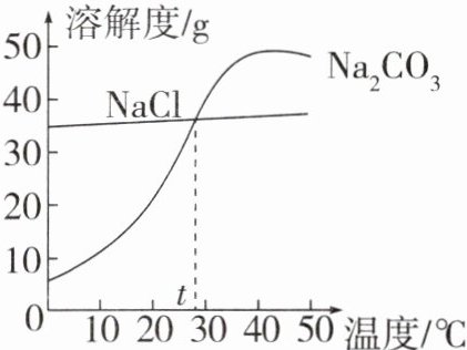(1)由图像可知,$0\sim t^{\circ }C$内,NaCl的溶解度大于$Na_{2}CO_{3}$的溶解度。