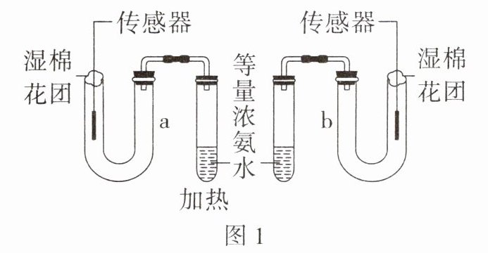 13.(中考新考法·数字化实验)某实验小组同学在老师带领下按图装置探究分子运动实验,并借助数字化传感器测得U形管a,b中氨气浓度随时间变化的曲线如图2,据此回答问题(氨气易溶于水进入空气中污染环境)。