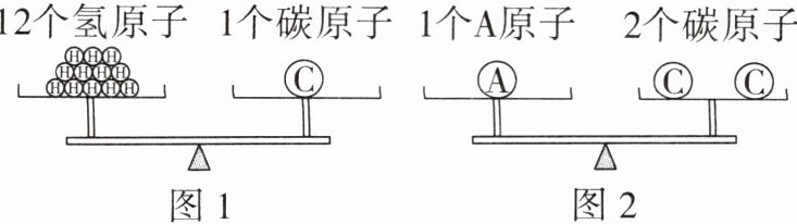 从图1可知,12个氢原子的质量等于1个碳原子的质量,已知氢原子的相对原子质量约为1,设碳原子的相对原子质量为$x$,根据相对原子质量的计算关系可得$12×1 = x×\frac{1}{12}$(这里是从相对原子质量与原子实际质量比例关系角度理解,12个氢原子相对质量总和等于1个碳原子相对质量),解得$x = 12$,即碳原子的相对原子质量约为12。