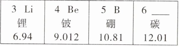 10. 元素周期表是学习和研究化学的重要工具,如图是元素周期表的部分信息。锂的原子序数为______;铍的相对原子质量为______;5 号元素属于______(填“金属”或“非金属”)元素;请补全 6 号元素空缺内容;这四种元素位于第______周期。