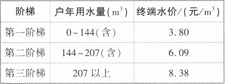 |阶梯|户年用水量($m^{3}$)|终端水价/(元/$m^{3}$)|