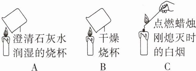,可说明蜡烛燃烧的产物有水。(3)如图 C 所示,熄灭蜡烛并立即用燃着的木条伸到白烟处(不接触烛芯),发现蜡烛重新被点燃,这说明白烟具有